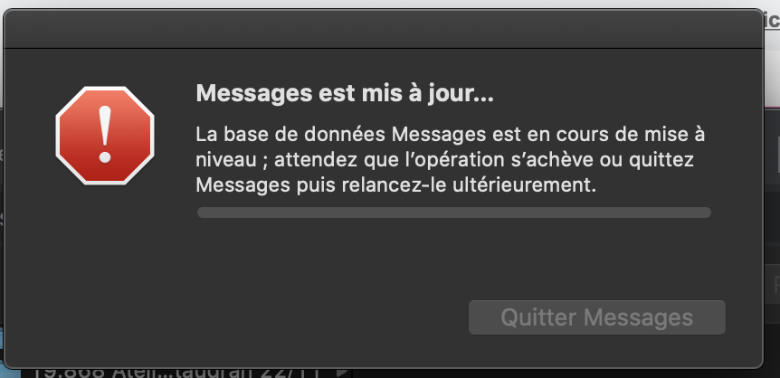 je ne parviens pas à lancer messages sur mon mac. il y a un message d'erreur dès que je clique pour lancer l'app (voir fichier joint). Mon mari a la même version que moi et aucun message de ce type...