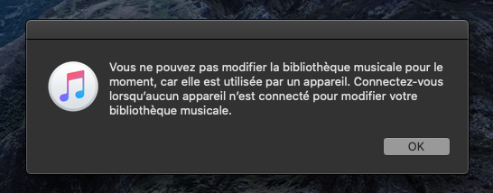 Pourtant, ma bibliothèque n'est utilisée par aucun autre appareil. Seule solution, Redémarrer et choisir ma bibliothèque à la 1ère ouverture de "Musique". Après, je ne peux plus changer...