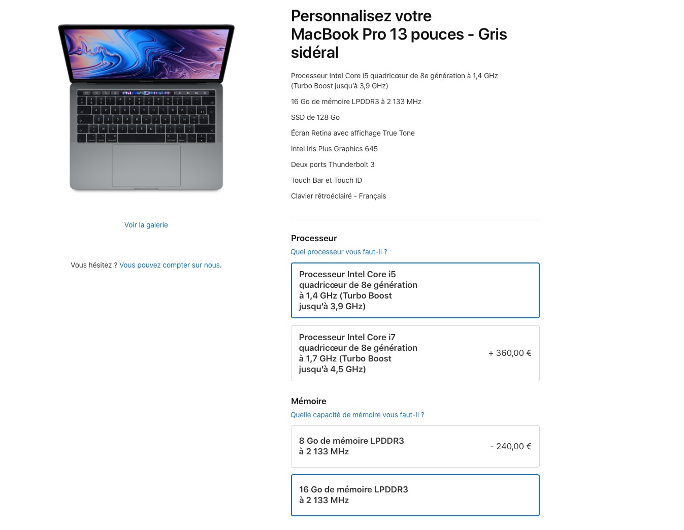 je souhaite changer mon Mac book pro 13'; de 2012, pour un nouveau 13'; mais je souhaite 16GO de Ram, or je n'en vois aucun avec autant de mémoire.