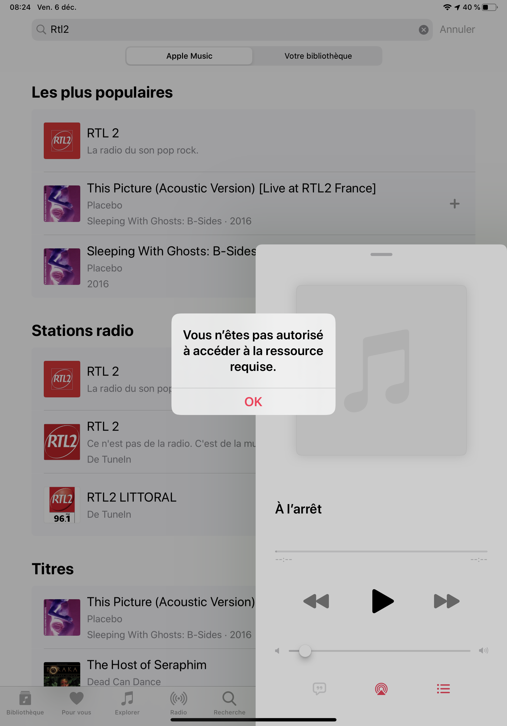 J’ai le même souci que d’ autres sur ce forum, à savoir, depuis ce matin, le 6 décembre 2019, impossibilité de recevoir la radio RTL ou RTL2 sur le HomePod. Siri répond à la requête et rien ne se passe. Pour les autres radios, Europe 1 etc... c’est ok. J’ai réinitialisé le HomePod et le problème persiste. Je tiens à signaler néanmoins qu’en passant par une application tierce de radios et en jumelant l’ iPad au HomePod ça fonctionne. Merci par avance de vos retours.