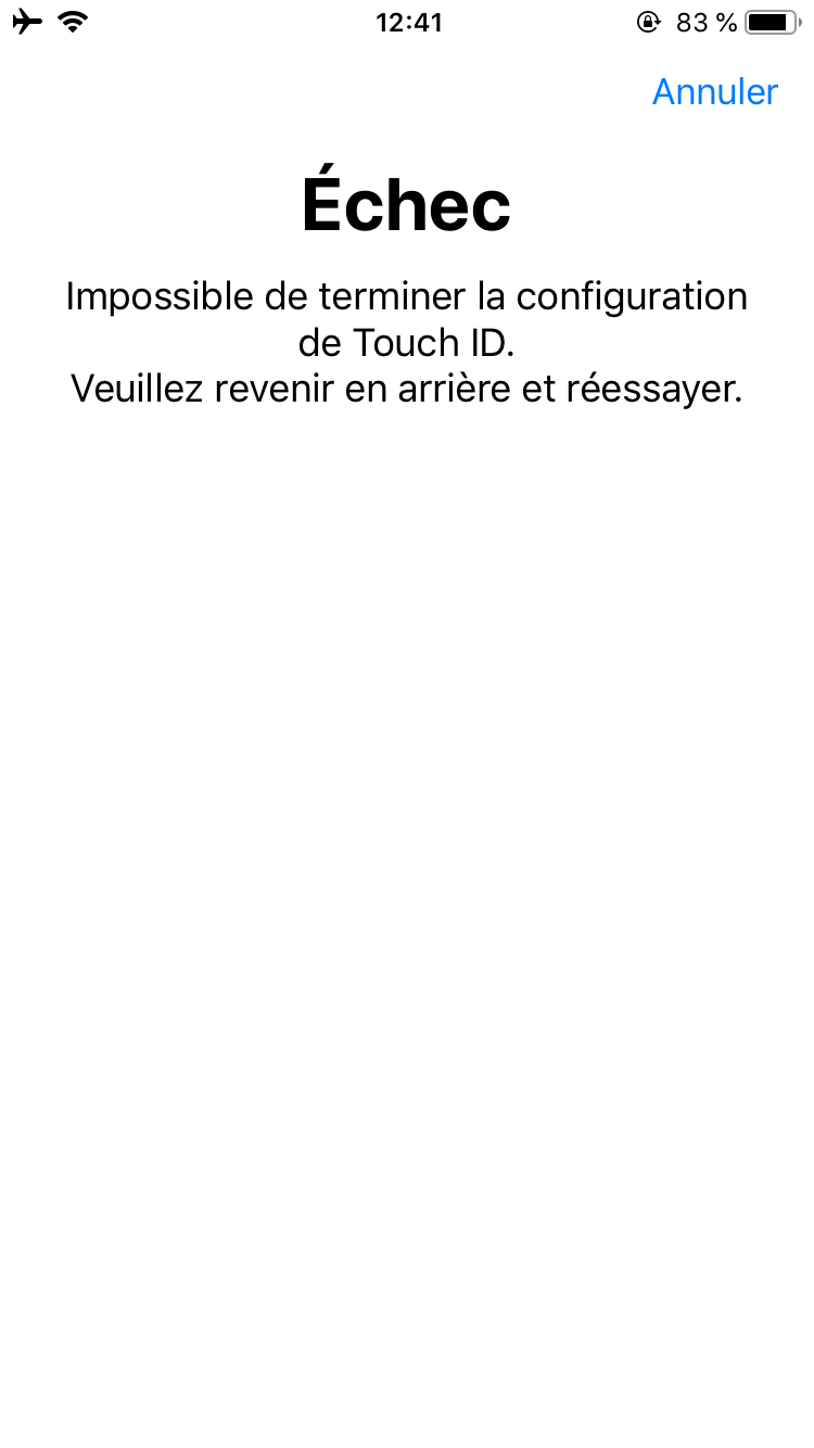 Bonjour mon Touch ID ne fonctionne pas quand j’essaie sa m’écris échec veuillez retourner en arrière puis essayer mais cela ne marche pas