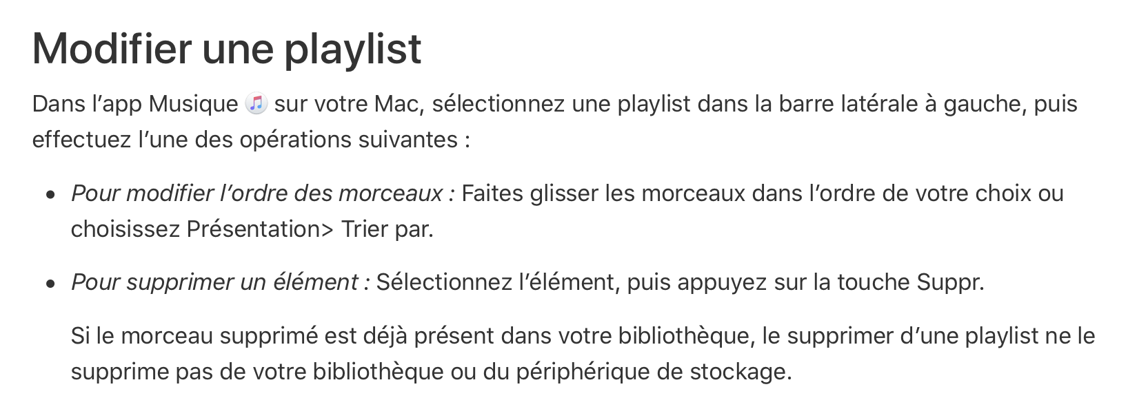 Non ce n'est pas une Playslist d'Apple Music. C'est une playslist personnelle que l'on peut créer via sa propre bibliothèque et qui s'affiche sur la gauche dans la barre latérale. Le problème est que je souhaite synchroniser la playslit avec mon Ipod. Avant Catalina je n'avais aucun soucis pour la modifier à mon gré.