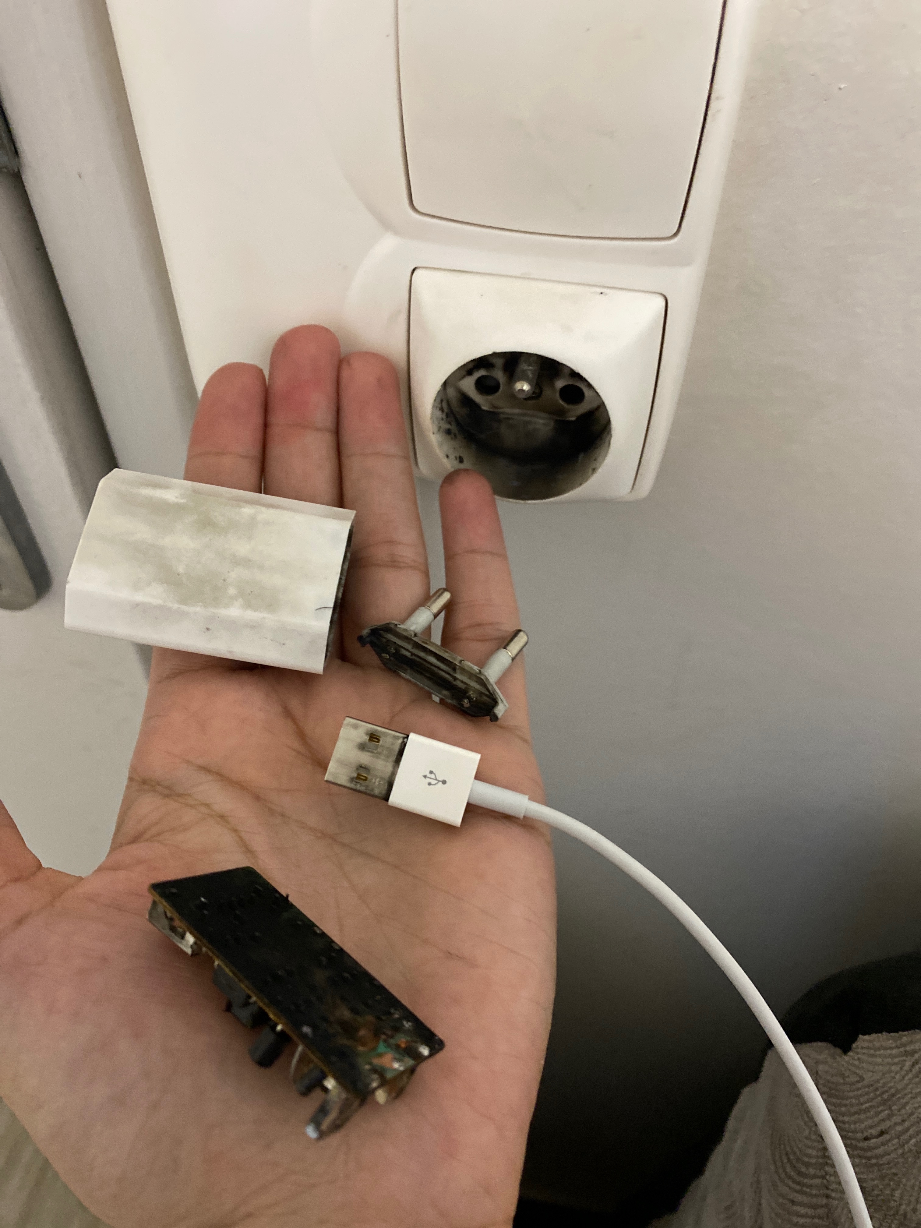 J’ai mon chargeur qui vient d’exploser et prendre feu