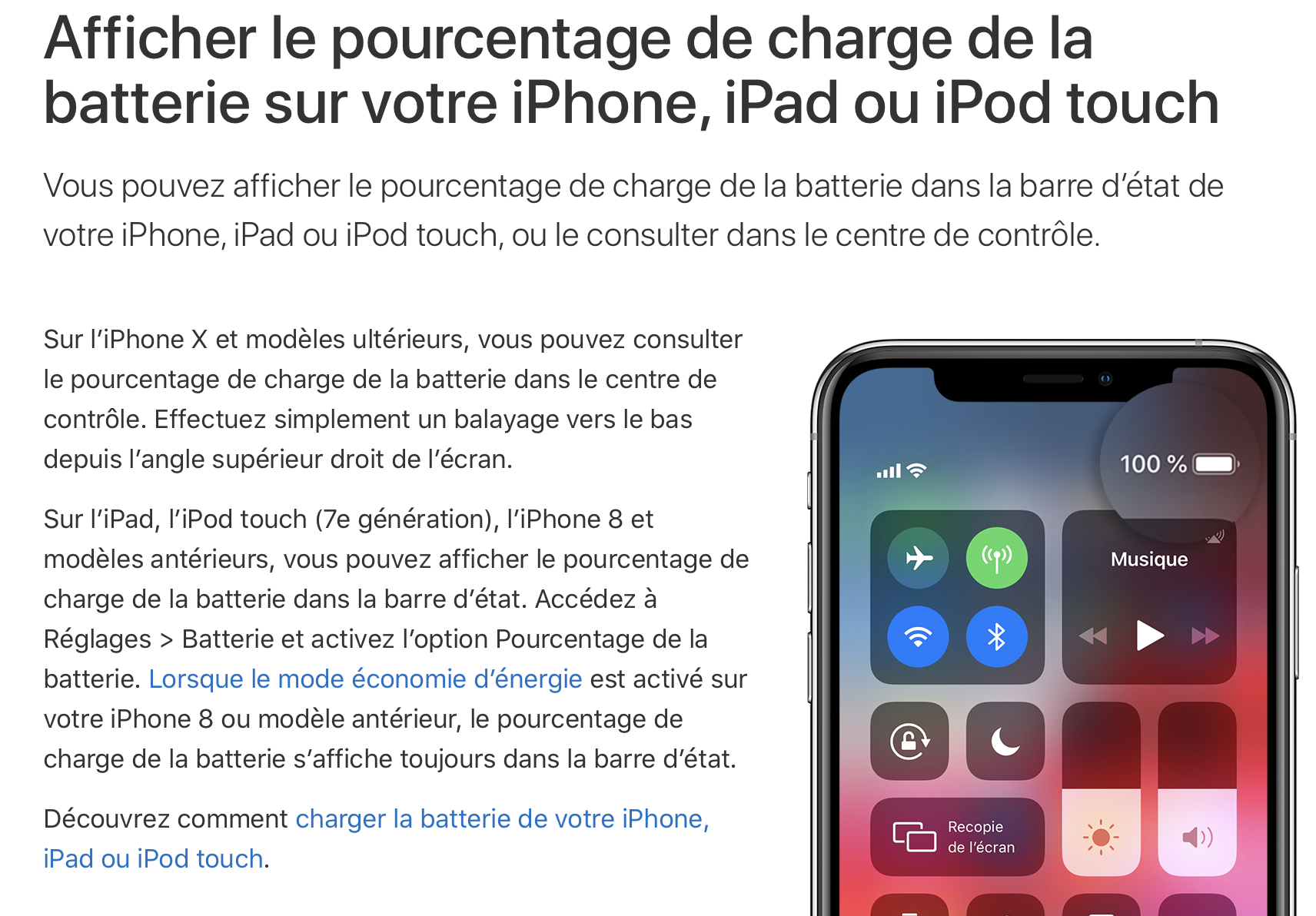 Sur l'iPhone 11, il faut ouvrir le centre de contrôle pour afficher le pourcentage 🙂