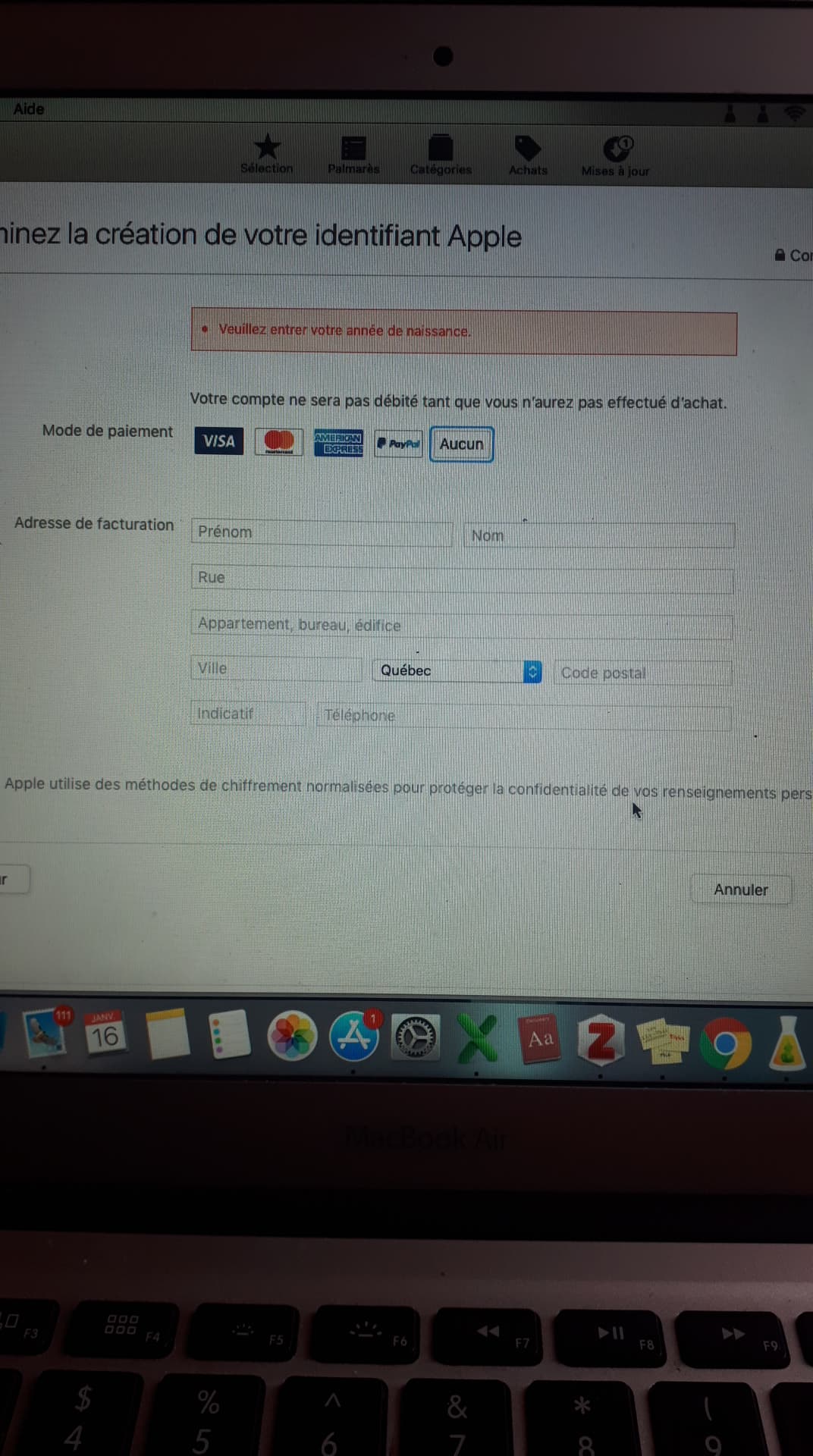 Je n'ai pas Firefox sur mon ordinateur... et m'a connexion à l'apple store (Ou il m'est demandé de mettre ma date de naissance) est sur mon ordinateur portable...