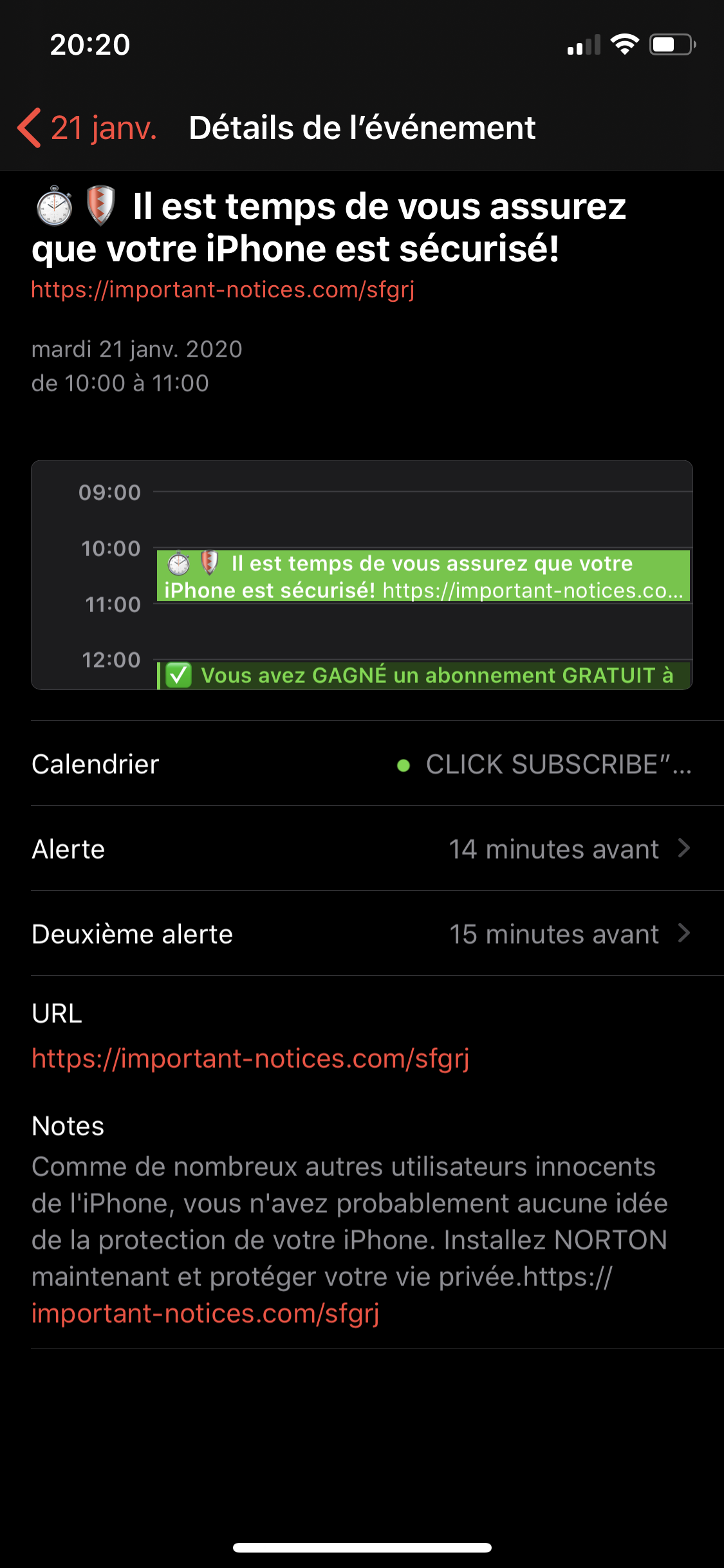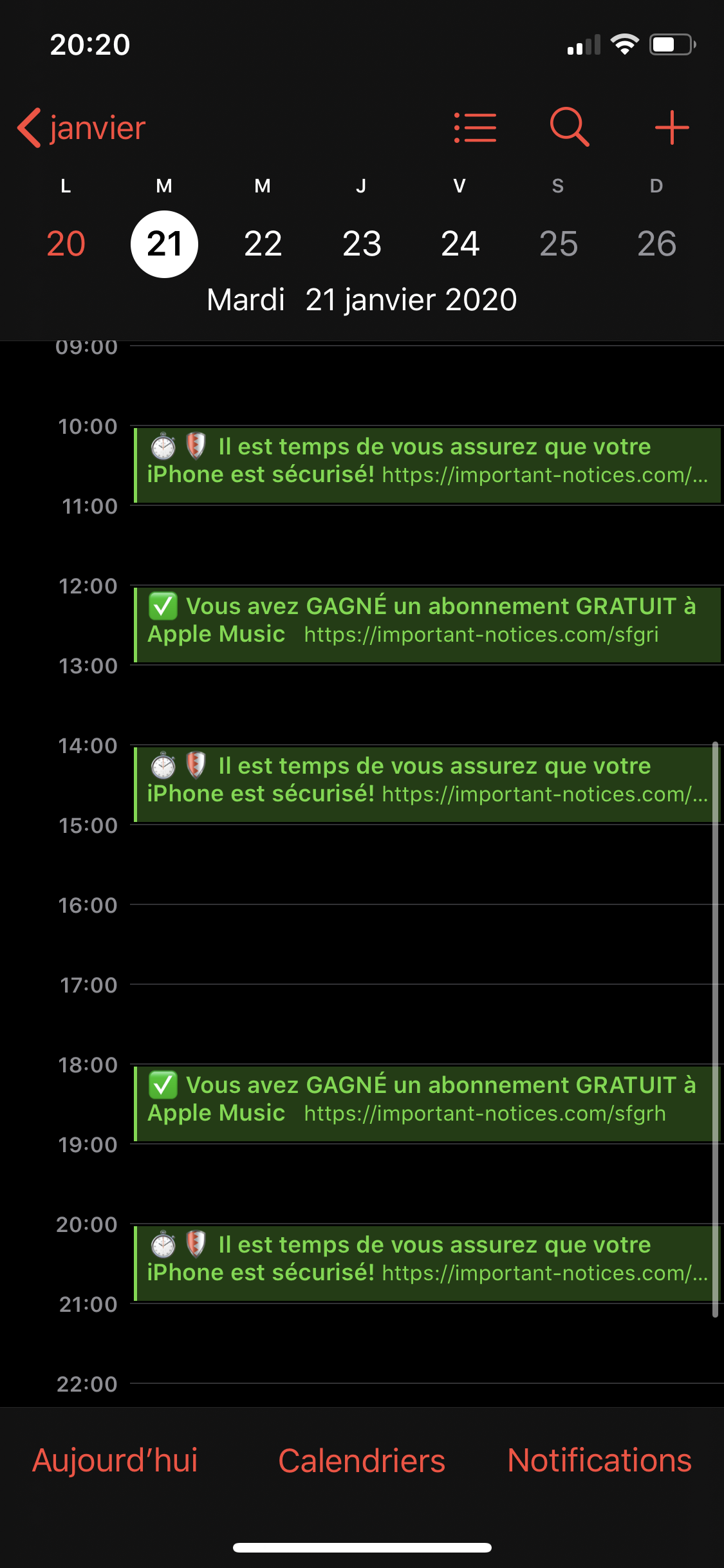 J’ai déjà vu les techniques présentées sur d’autres sites (notification via e-mail au lieu de l’application Calendrier, déplacer les spam dans un nouveau calendrier puis l’effacer) mais ces techniques sont irréalisables dans mon cas.