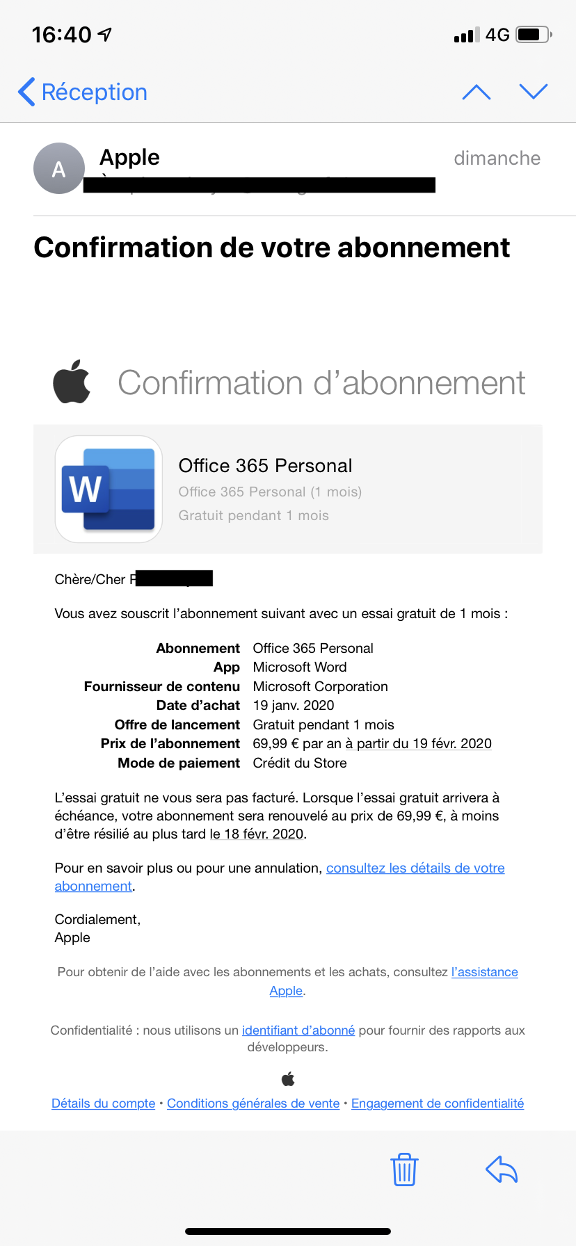 Je me suis abonné à Office 365 avec mon identifiant Apple mais les logiciels ne reconnaissent pas mon abonnement "aucun abonnement payant n'est associé à cet identifiant Apple". Comment activer Office 365?