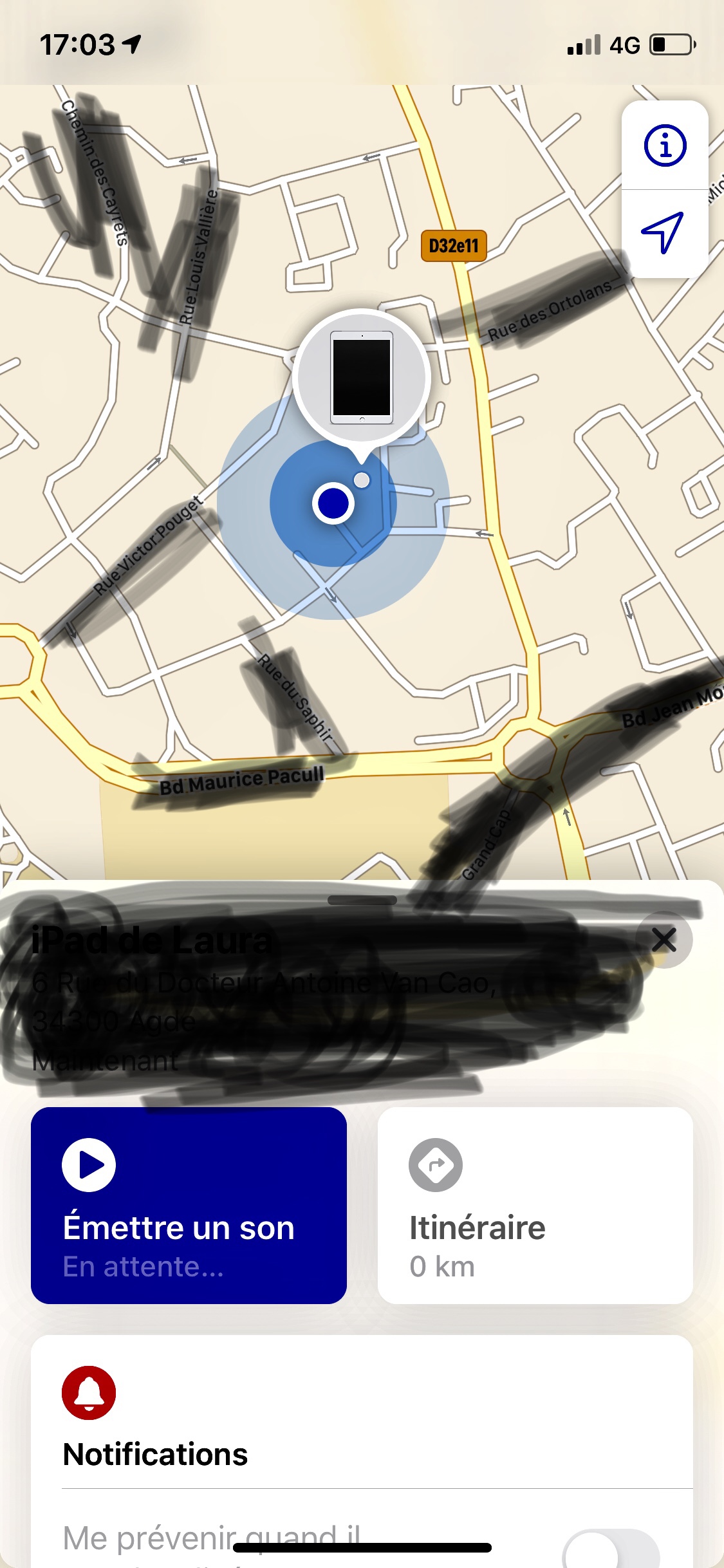 Bonjour pourquoi quand je cherche à faire sonner mon ipad que j’ai perdu dans localiser pour émettre un son ça réfléchi ?