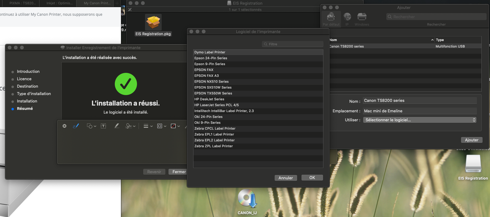 J'ai acquis récemment l'imprimante Canon TS8250. Il est impossible d'imprimer en brouillon (le curseur se "fixe" uniquement sur le mode normal ou qualité supérieure mais le brouillon n'est pas reconnu). Le mode brouillon en question est reconnu sur les autres systèmes d'exploitation qu'Apple.
