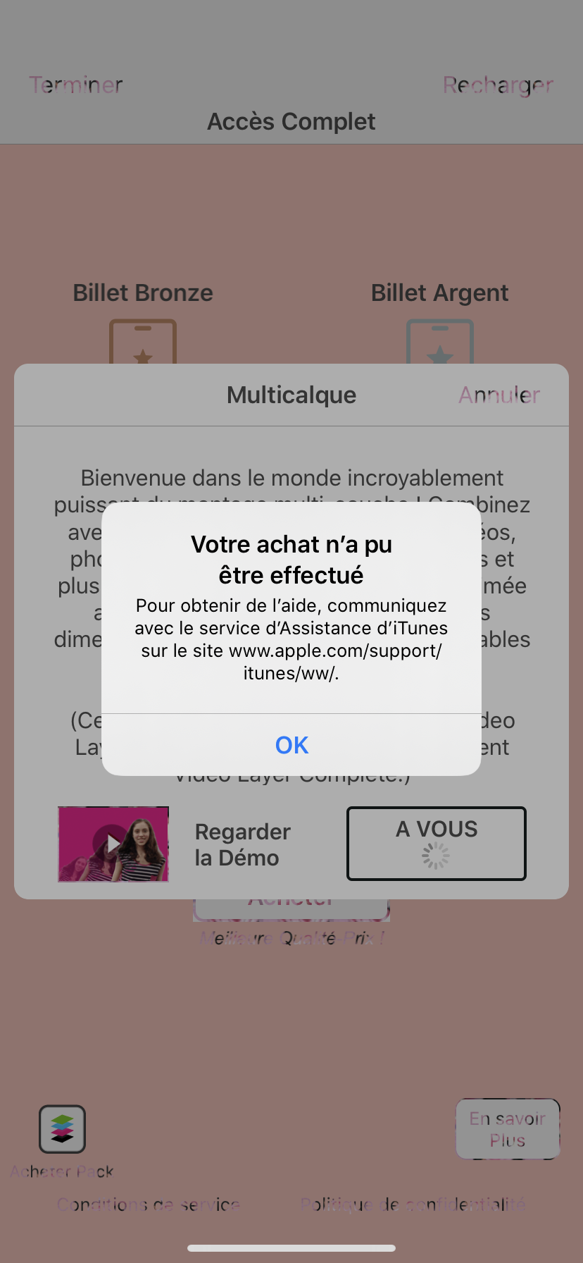 J’ai voulu acheter un pack sur Videostar et ça m’a recommandé de texter Apple support quand j’ai voulu acheter.. Aidez-moi svp! Merci!