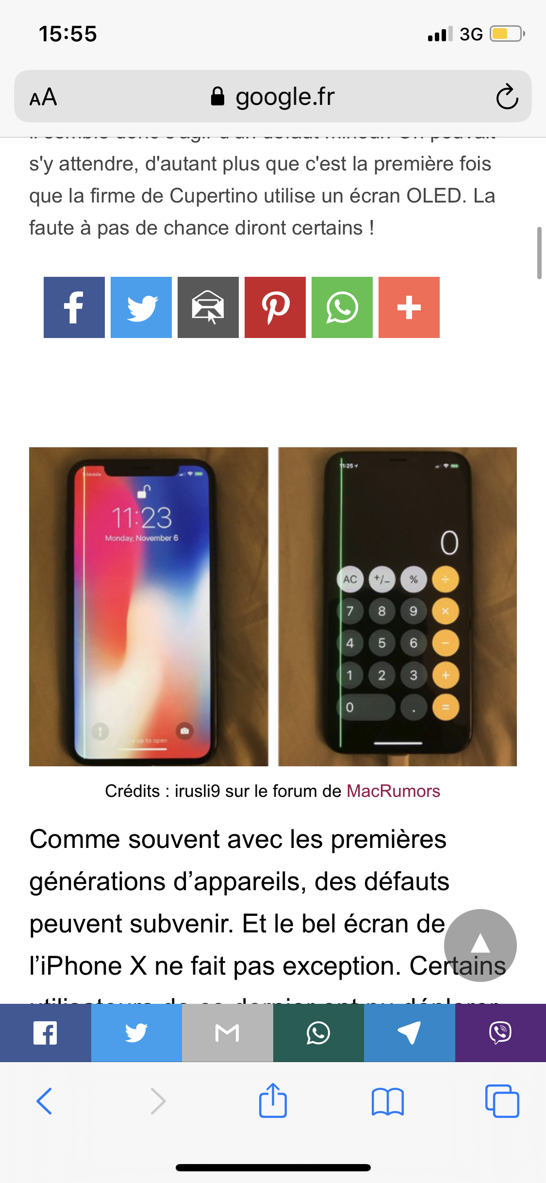 une longue ligne verte vien d’apparaître sur mon iPhone X d’un coup.