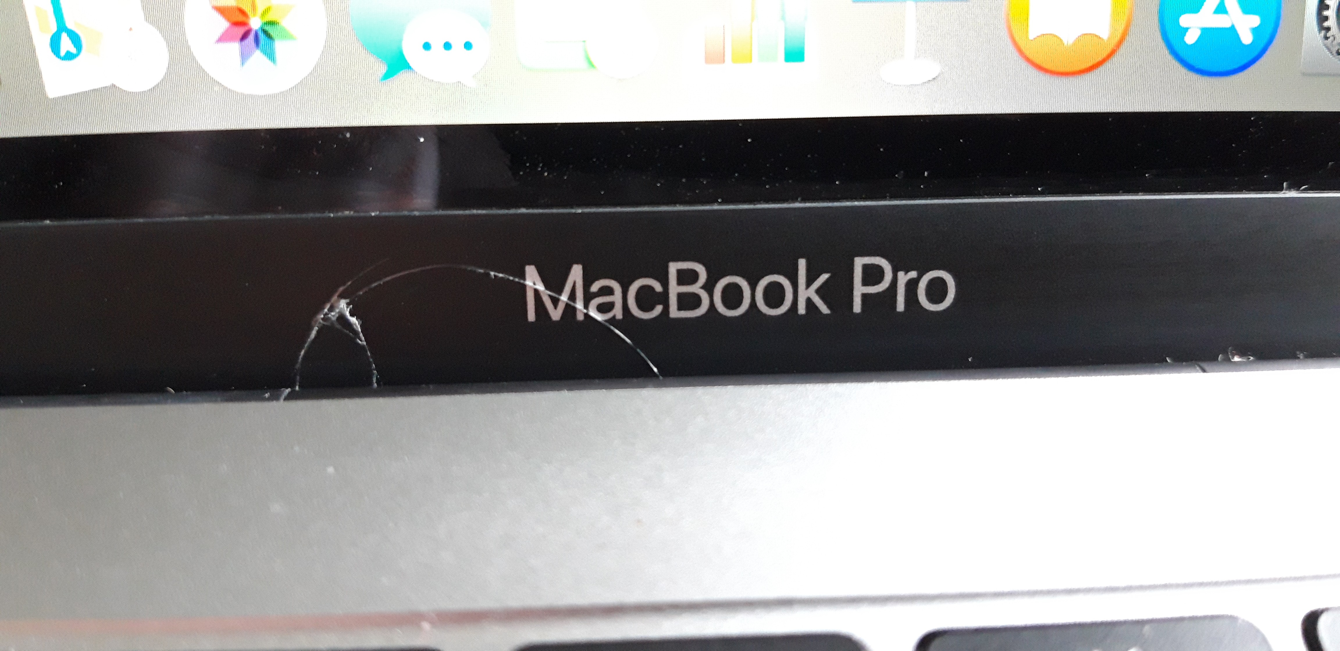 Aujourd'hui, j'ai essayé d'enlever les petites crasses coincées dans la rainure entre l'écran et le clavier de mon mac avec un coton-tige. J'ai à peine touché que la partie inférieure de l'écran où il est écrit "MacBook Pro" s'est fissurée. Je n'ai pas appuyé fort car je faisais attention. Est-ce que le même problème est déjà arrivé à quelqu'un? Est-ce que c'est possible de changer cette partie sans changer tout l'écran? Auriez-vous une idée des prix?