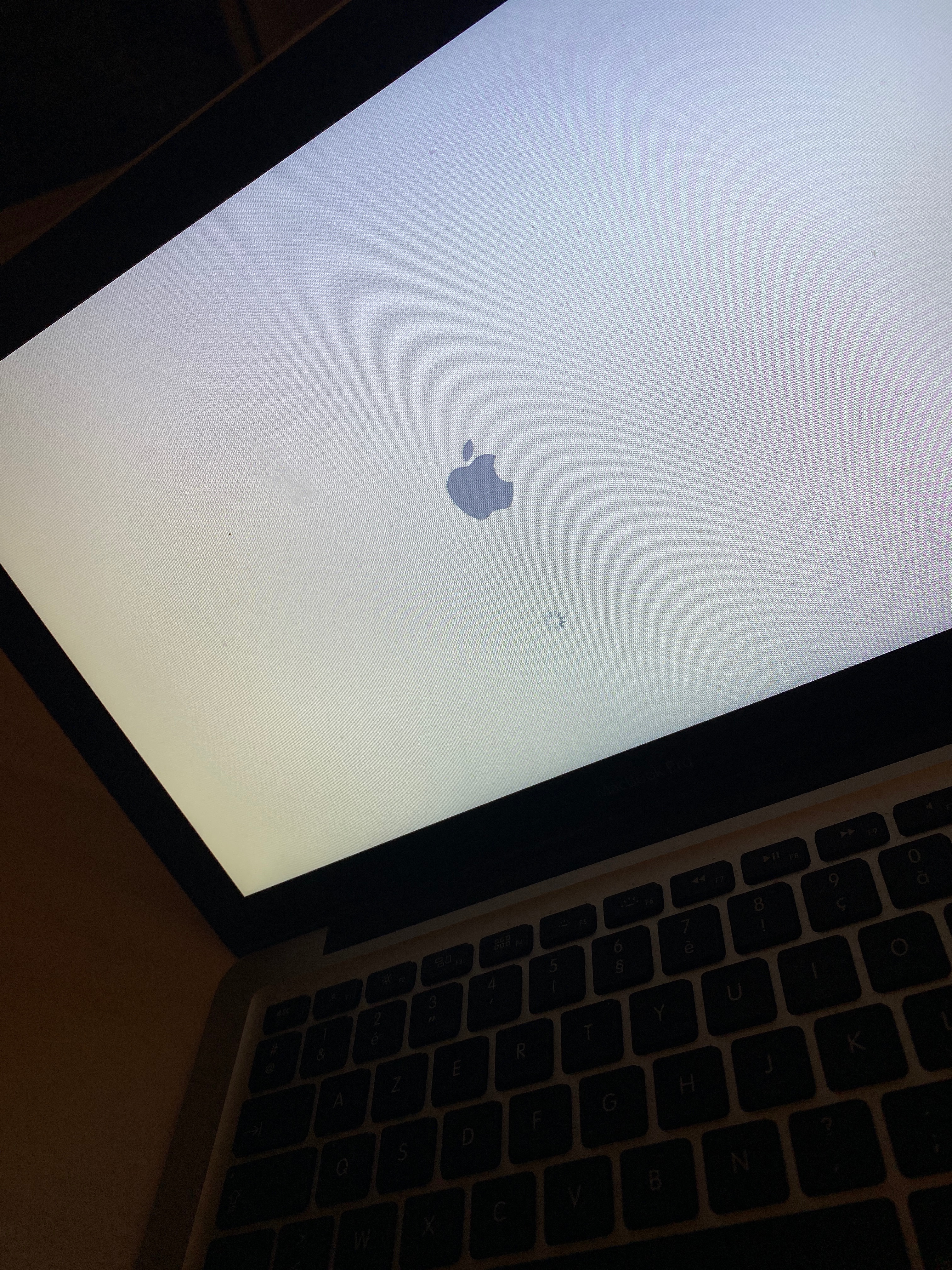 j’ai un problème avec mon mac il s’allume et reste figée sur la pomme pendant des heures