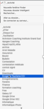 lorsque je fais un clic droit sur l'icône de Finder la longue liste des dossiers récemment ouverts apparaît il faut "scroller" vers le haut pour avoir accès aux fichiers ouverts, c'est pénible
