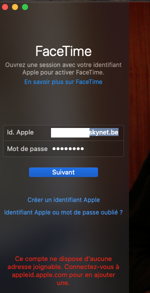 toujours en utilisant mon adresse mail et idApple xxxx@skynet.be