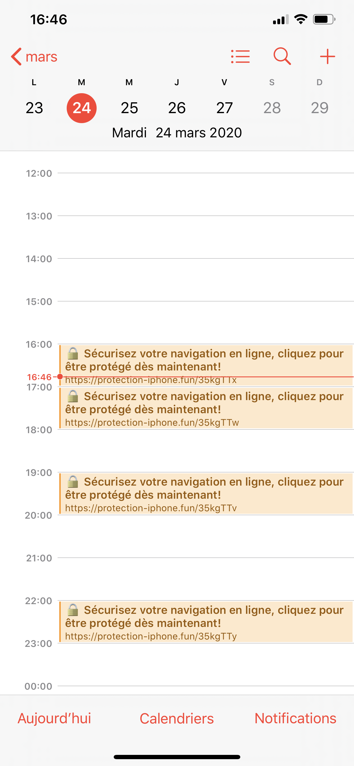 Bonjour, depuis quelques jours je reçois ça sur mon calendrier, je crois que ça pourrais être un virus. Pouvais vous m’aider