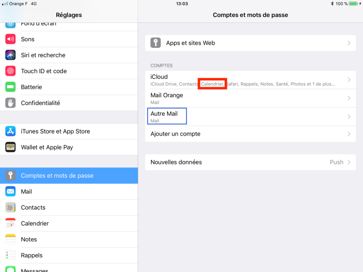 Ensuite, dans comptes, regarde quels comptes ont la mention "Calendriers", et indique moi lesquels.