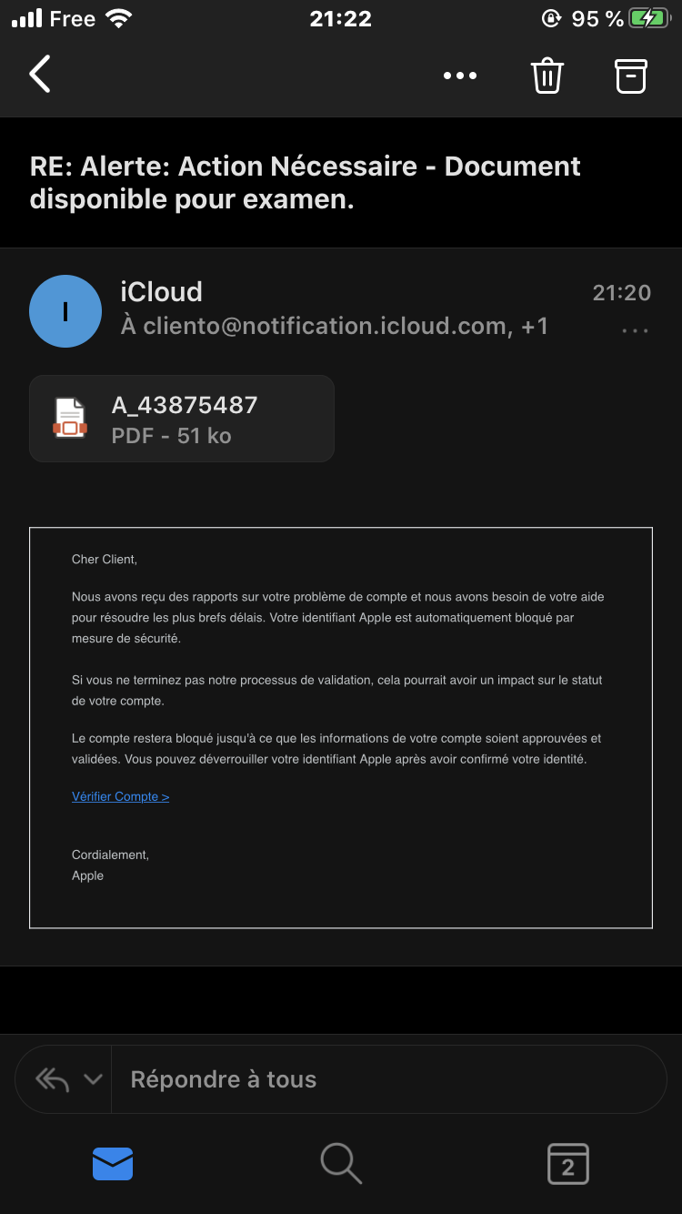 Bonsoir, je reçois régulièrement des mails d’une adresse: cliento@notification.icloud.com.