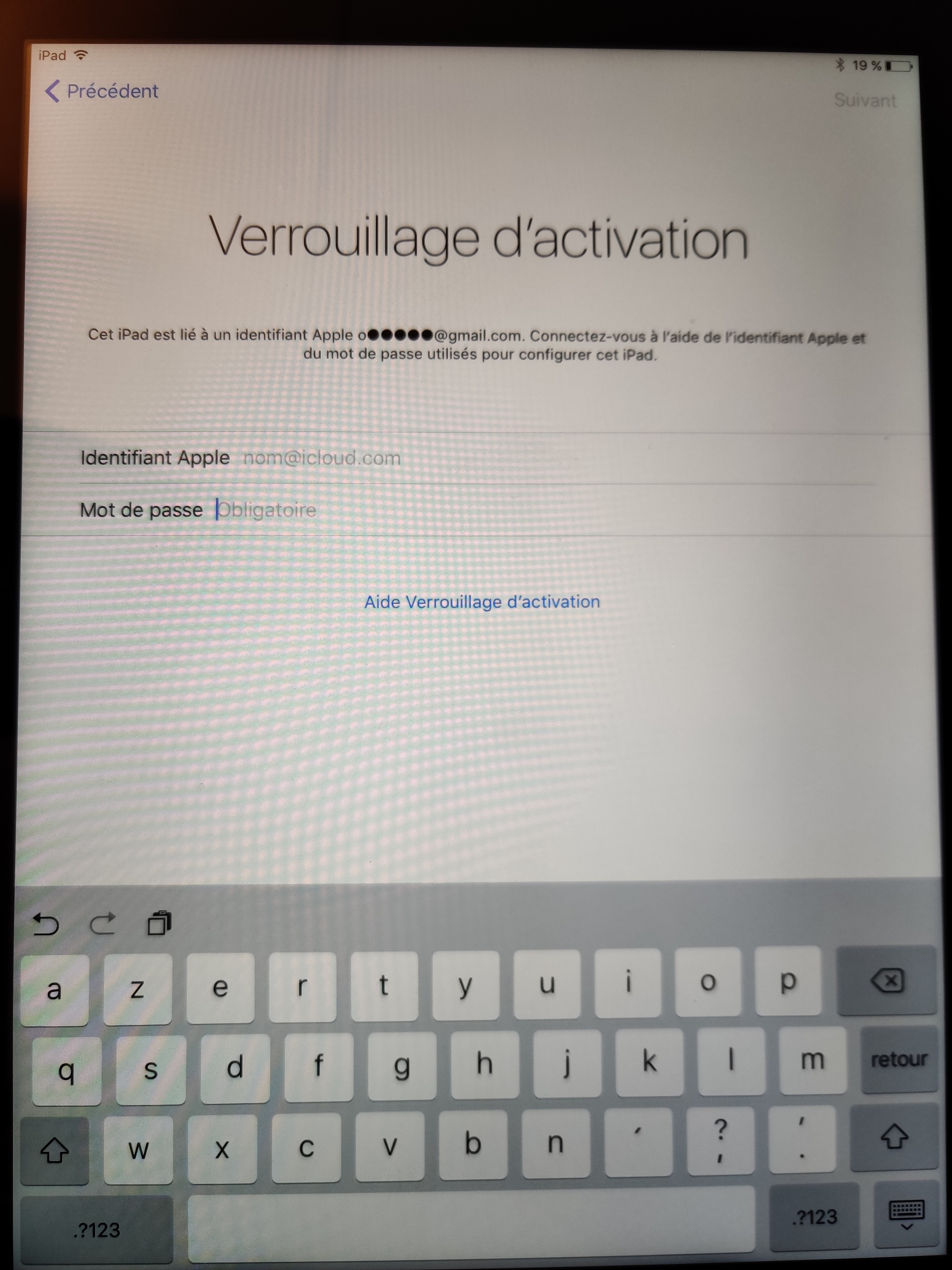 Bonjour, j'ai donné un iPad 4 a mon père mais après l'avoir réinitialiser ça me marque verrouillage d'activation.