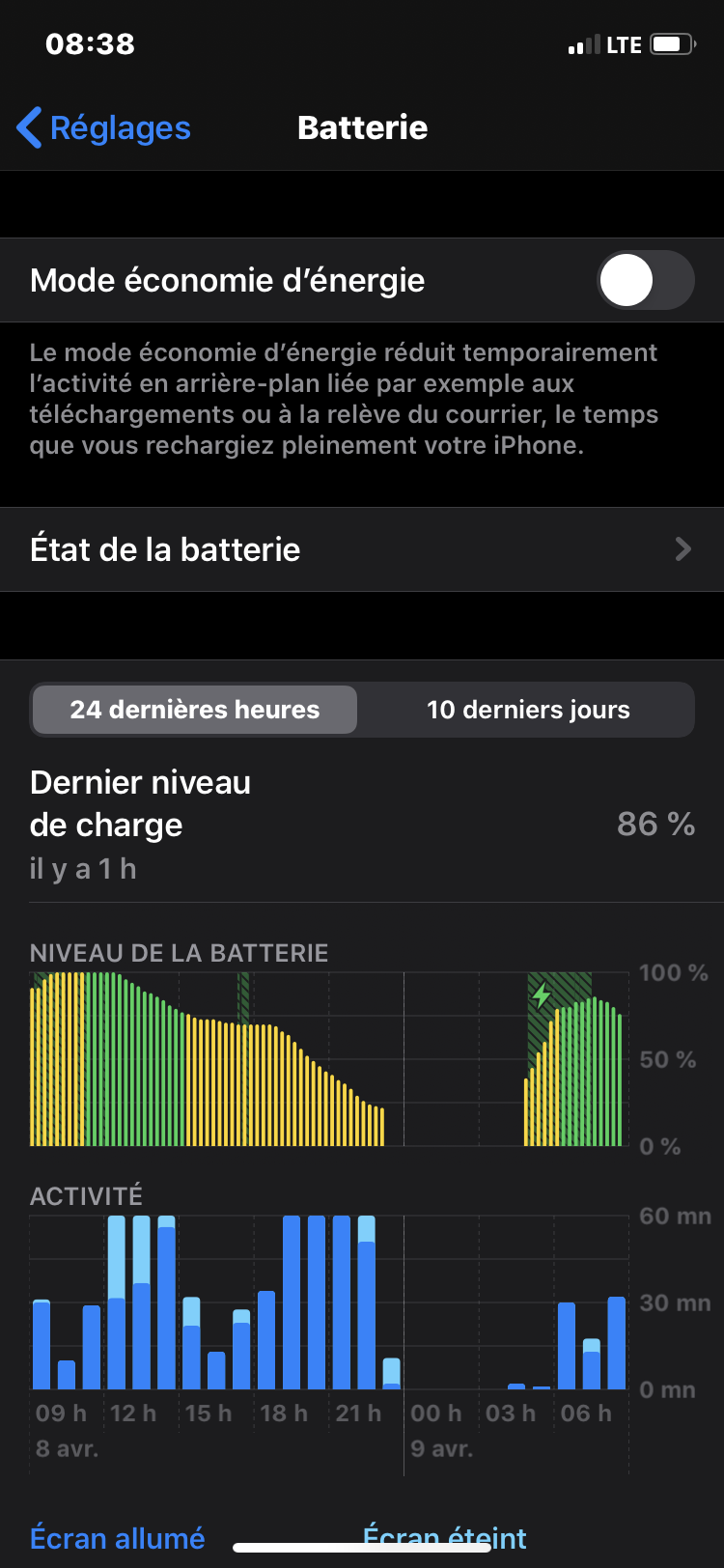 Je vous pose à nouveau mon pb: voilà j’ai un IPhone XR depuis à peine 2semaines mais je constate depuis 5jours environ que mon téléphone a du mal à charger jusqu’à 100%. Il s’arrête net à 80% en n’avance plus. J’ai éteint laissé une nuit entière et j’ai réessayé le lendemain, il a pu aller jusqu’à 90%.