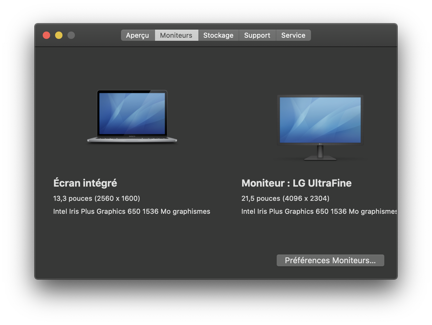 Depuis quelques temps je n'arrive plus à régler la luminosité de mon moniteur 4k Ultrafine de LG depuis la TouchBar de mon MacBook Pro ou depuis les réglages du moniteur dans préférences Système. Le moniteur est à jour (3.11,3.4,5226,3.04,0.2f) et mon MacBook Pro (2017) est à jour