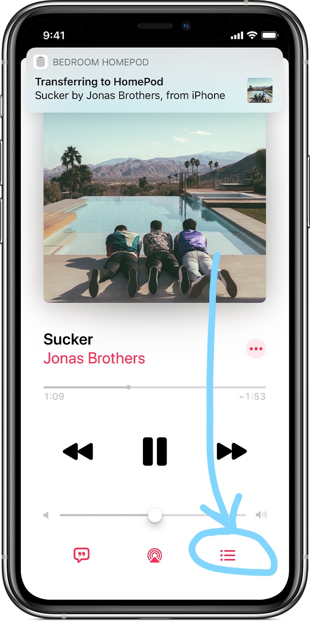 D'abord, assure-toi que ta bibliothèque musicale soit synchronisée dans iCloud ( ici ).