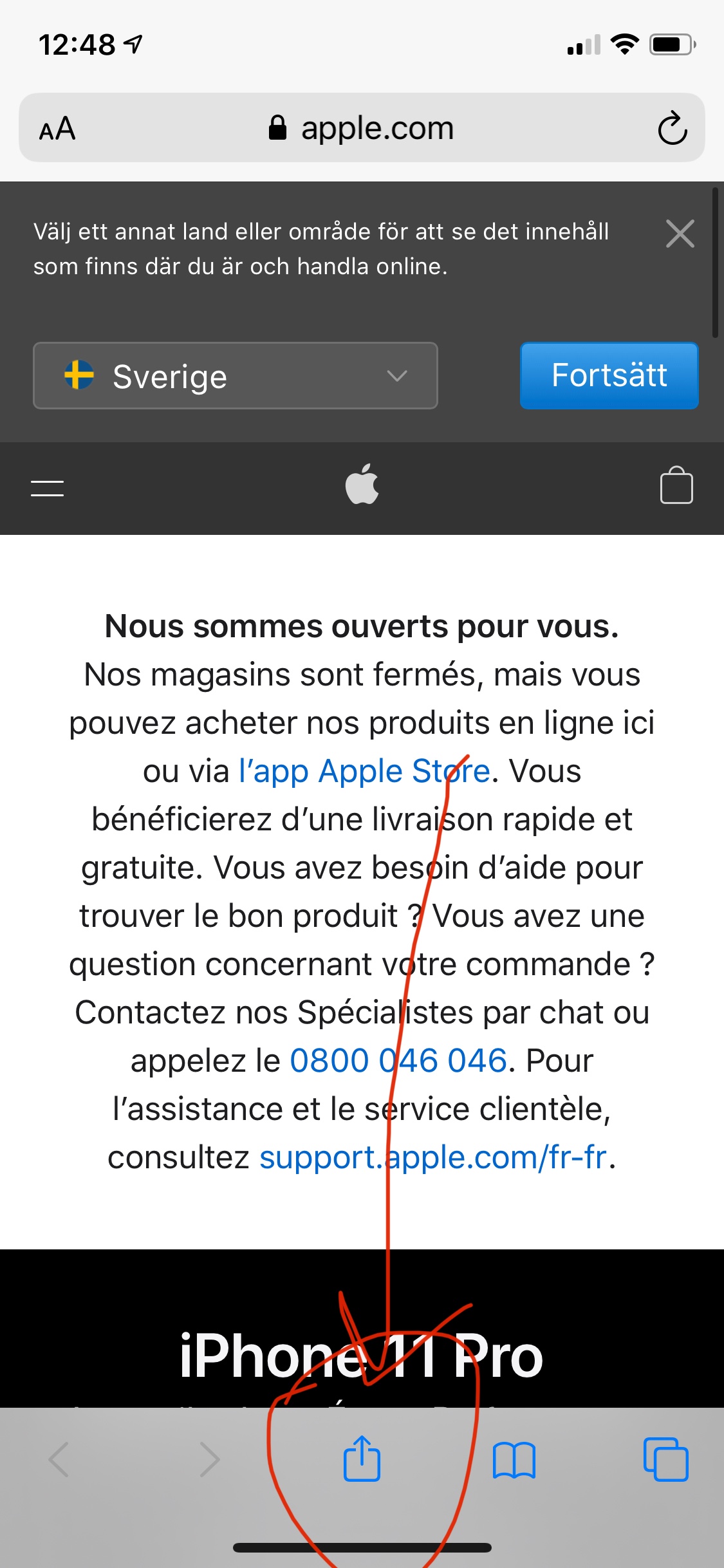 2. Une fois générée et affichée dans Safari, repère cette icône en bas de ta page :