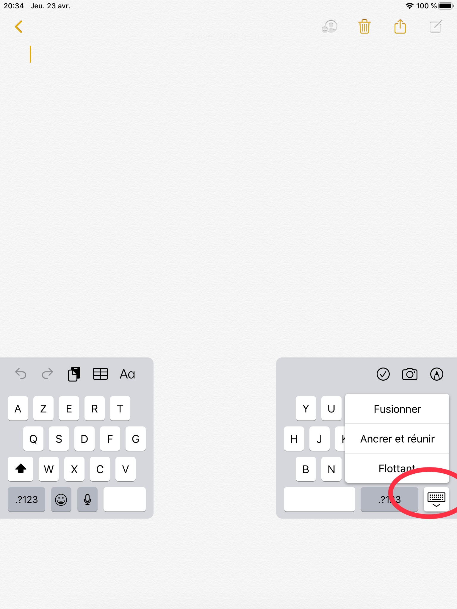 Le clavier de mon iPad est divisé en 2
