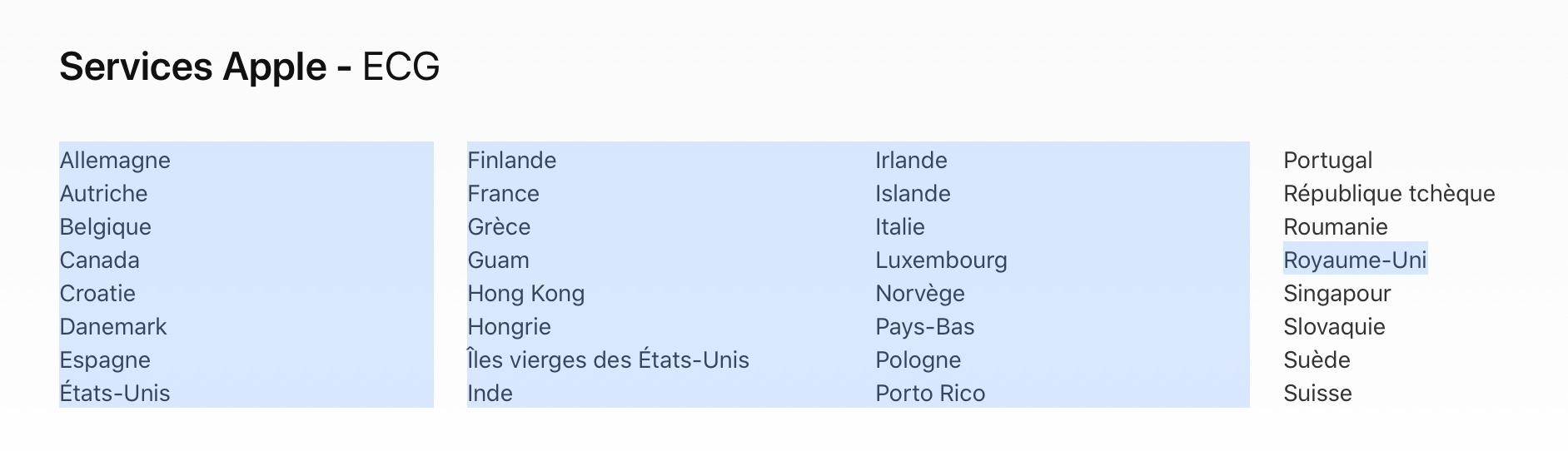 une amie a une apple watch series 5. Elle a changé d'iphone et depuis le changement d'iphone on ne retrouve plus l'app ECG sur son apple watch. Quand on la cherche dans l'app store de l'apple watch,elle est introuvable. De ce fait on ne peut pas configurer cette application sur l'iphone.