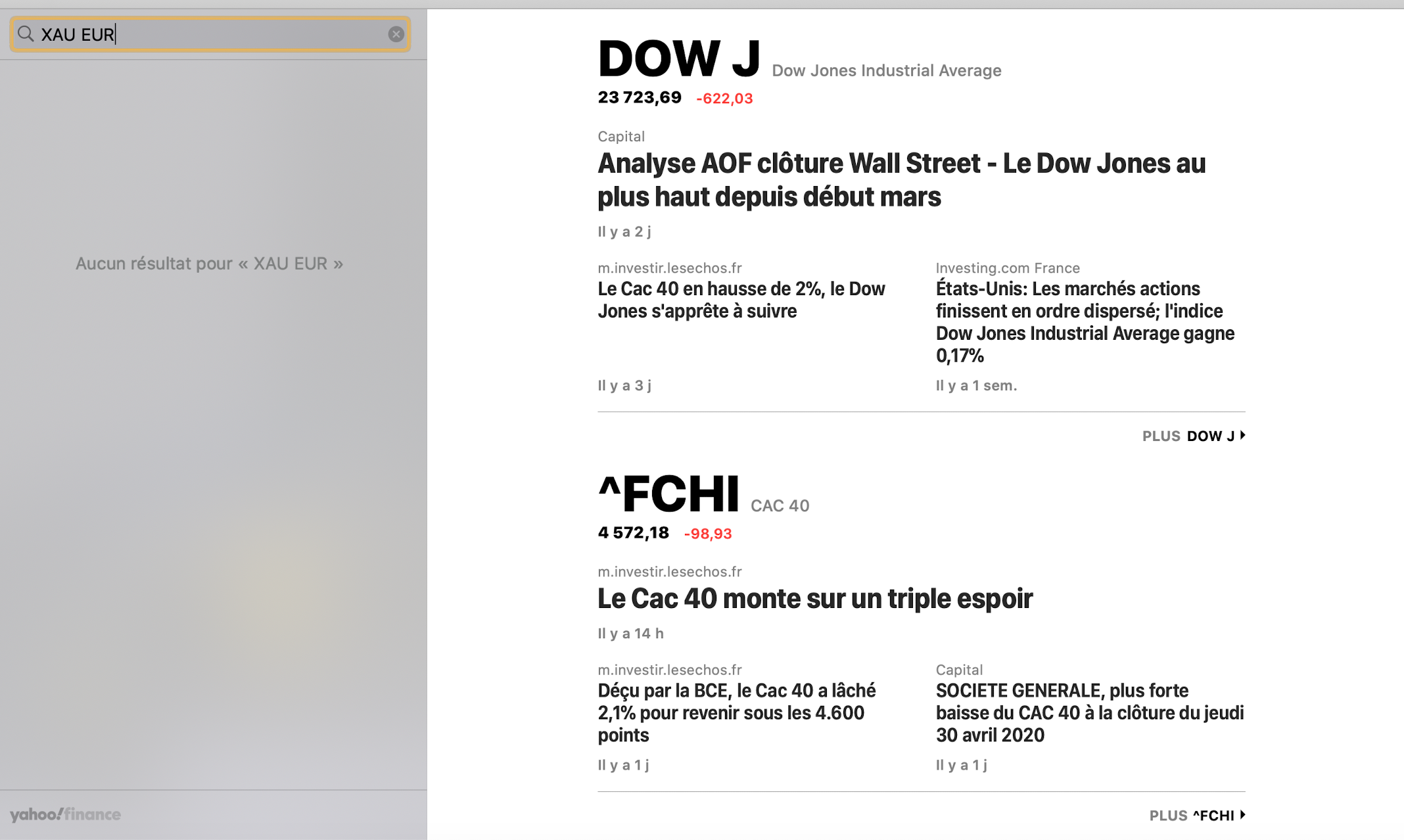 Le code utiliser de base pour le suivi de l'or es XAU EUR.
