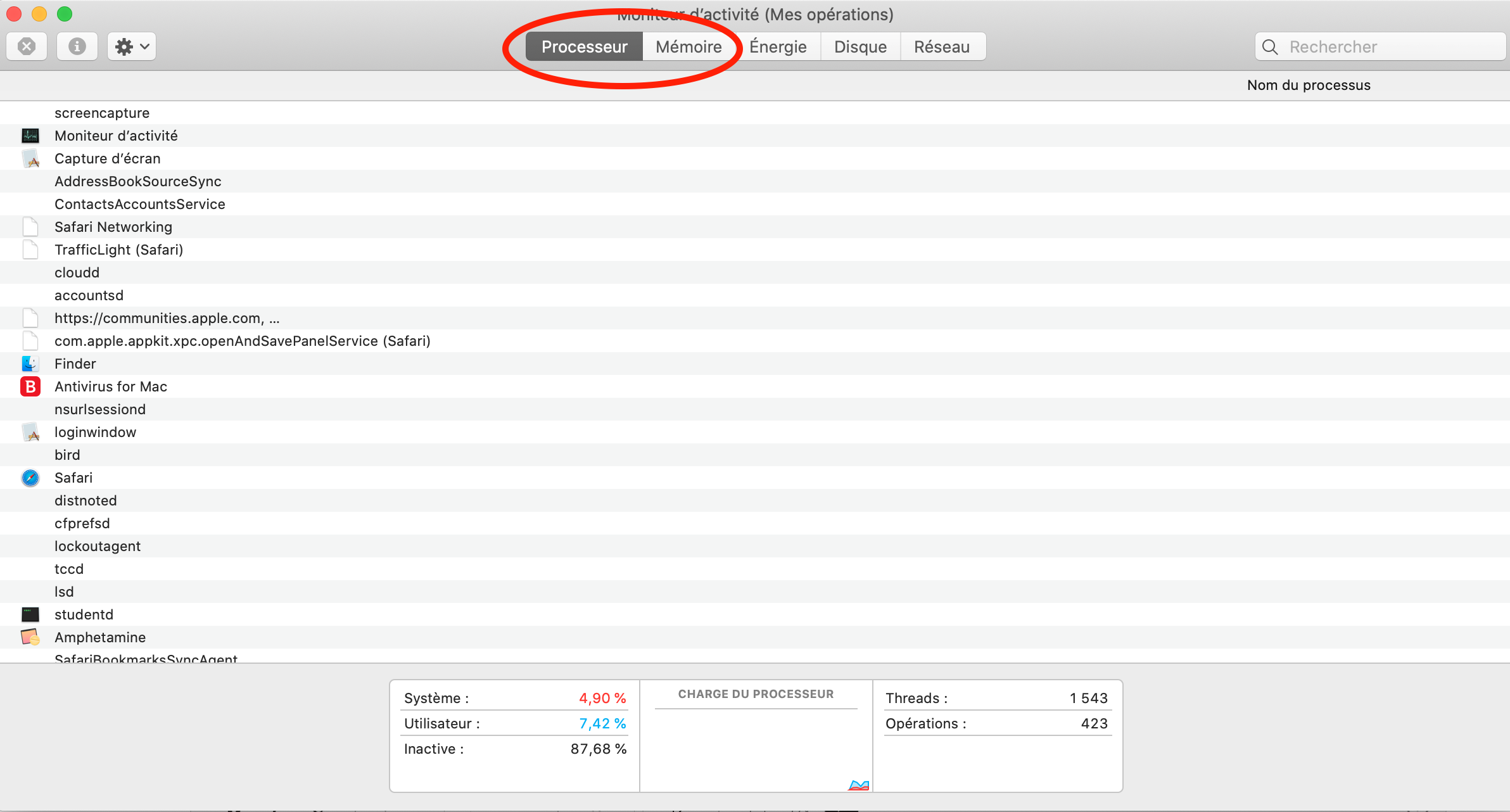 Une fois dedans, fais-nous deux captures d'écran : une de l'onglet "processeur" et une de l'onglet "mémoire" qui sont là :
