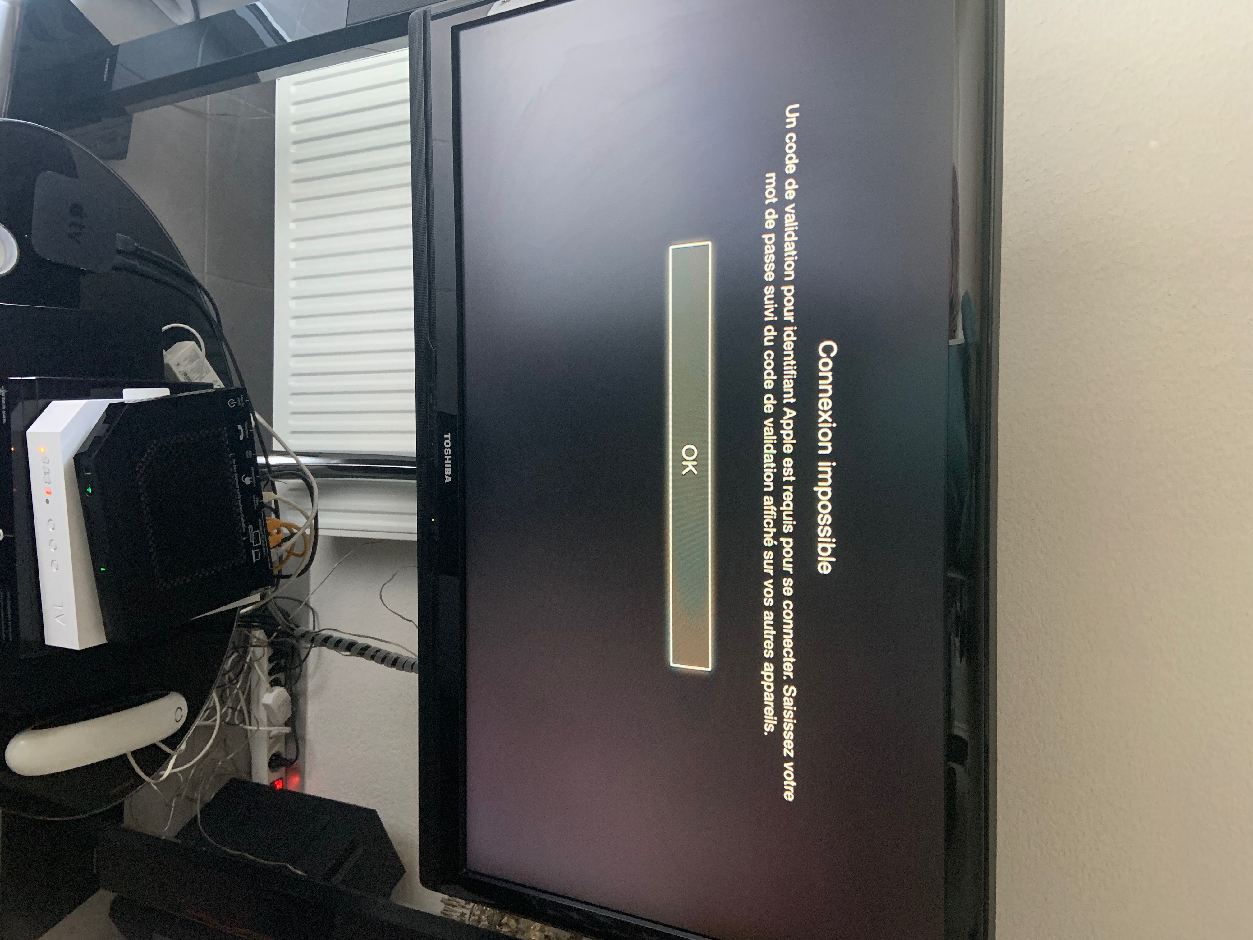 je ne peux pas taper le code de validation sur l apple tv cest ca mon probleme mon ecran m affiche rien il me dit directement connexion impossible