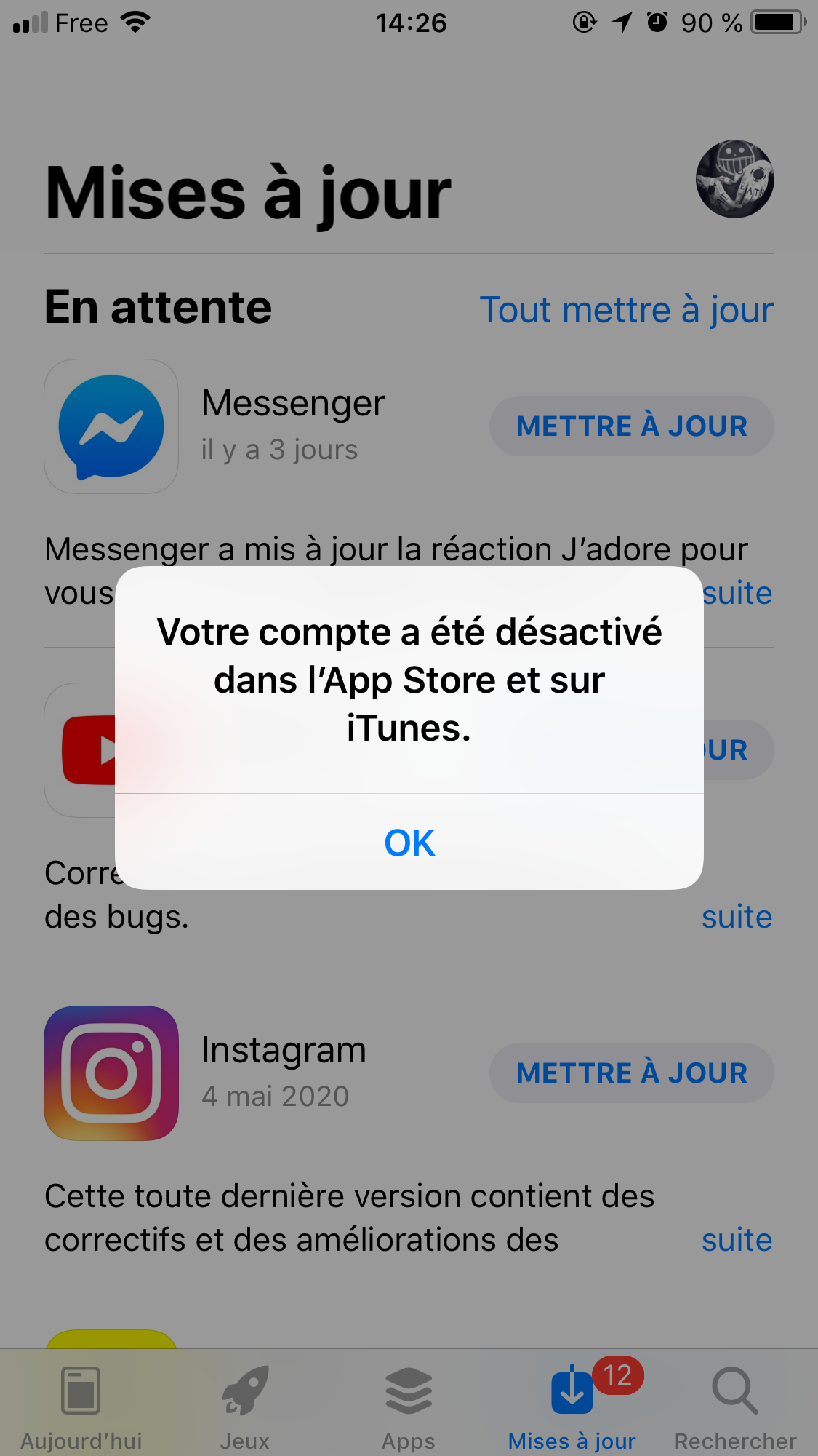 désolé de déranger encore mais ma situation ne s’arrange pas du tout, alors grâce a votre réponse et je vous en remercie, j’ai pu débloquer Apple store et iTunes, j’ai redémarré mon téléphone et depuis mes applications sont inutilisables, je ne peut plus les ouvrire, ni les mettre à jours, et en plus elle se supprime du téléphone mais pas de apple (voir photos ci-jointes), j’ai tout essayé redémarrer le téléphone, mettre a jour directement sur Apple store, j’en et même supprimer deux pour les réinstaller mais sa m’affiche faire une mise a jour... je peut même pas mettre à jour mon téléphone non plus et je peut même plus transférer de photos a partir de l’album sur gmail comme avant.... s’il vous plaît, je ne sais plus quoi faire et pour l’instant je ne peut pas acheter de nouveau téléphone..
