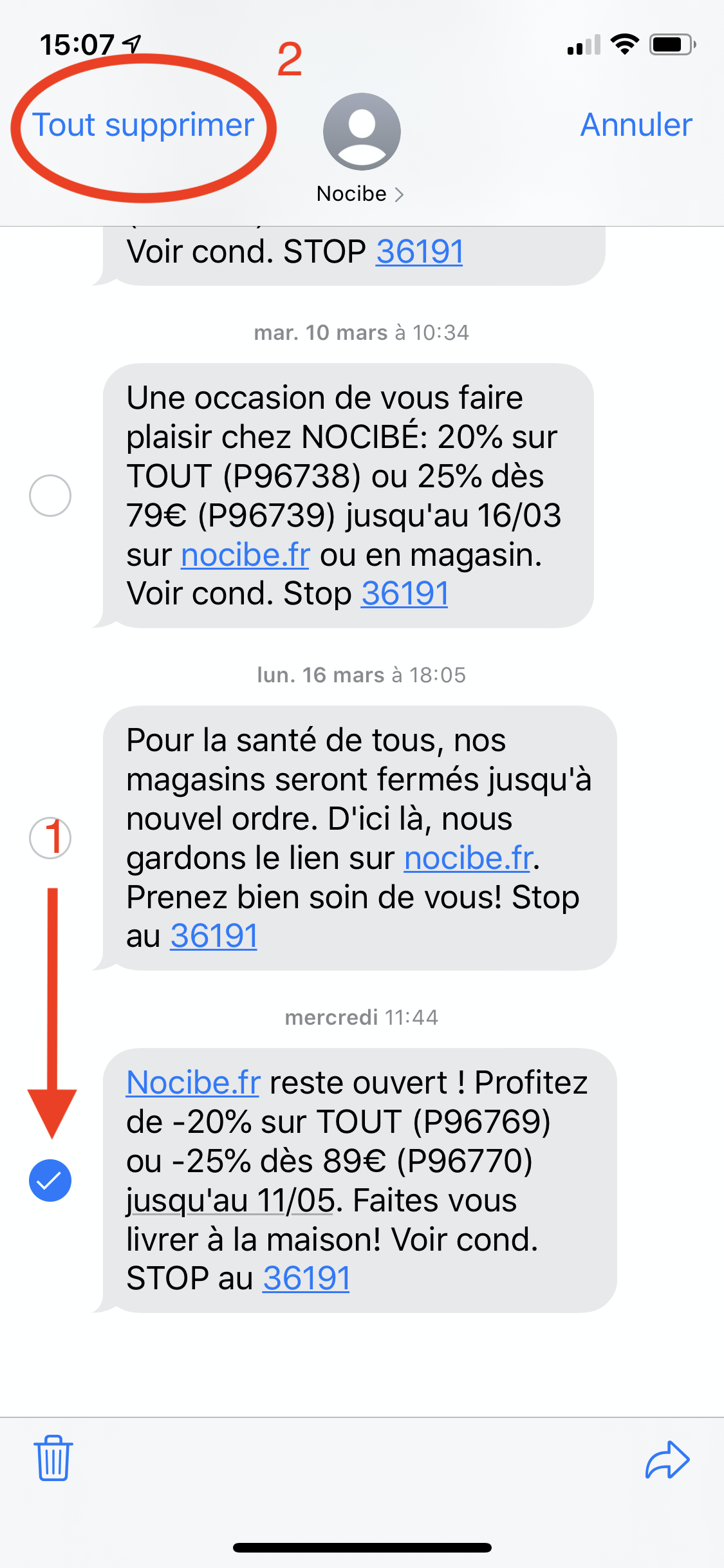 Supprimer SMS iPhone XS