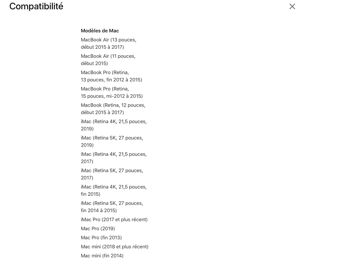 Oui il n'apparaît pas sur la liste mais un conseiller Apple m'a confirmé que oui, mon iMac a 10 ans maintenant, peut-être pour cela qu'il n'apparaît pas (ou plus) sur les listes comme pour le SuperDrive USB (que je suis quasiment sûr avoir vu tourner sur le même mac que le mien).