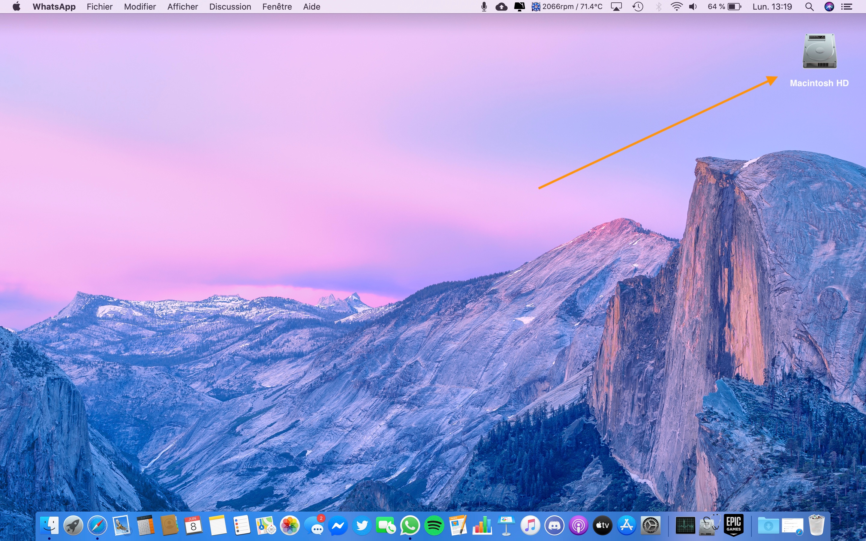 Depuis que j'ai réinstaller Mac OS sur mon Macbook pro 13" 2019, je ne trouve plus comment afficher mon disque dur sur le bureau (exemple dans l'image en montage photo)