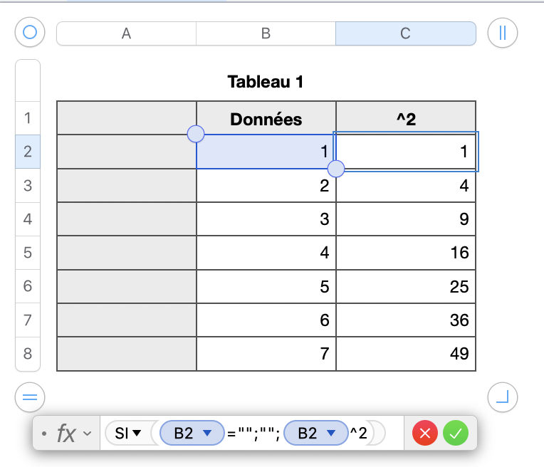 Formule en C2 =SI(B2="" ;"";B2^2)