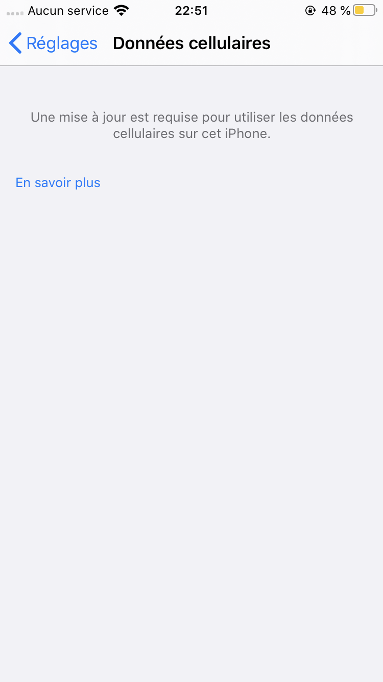 message d’erreur : une mise à jour est requise pour utiliser les données cellulaire sur cet iPhone