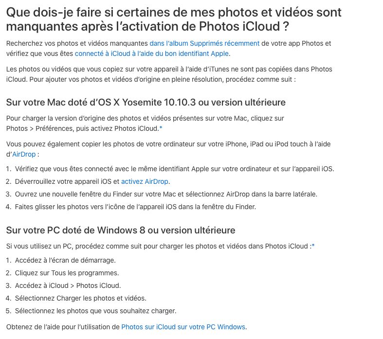 Lorsque vous activez Photos iCloud, le temps de chargement de vos photos et vidéos sur iCloud dépend de la taille de votre collection et de la vitesse de votre connexion Internet. Si vous disposez d’une large collection de photos et de vidéos, le chargement sera plus long.