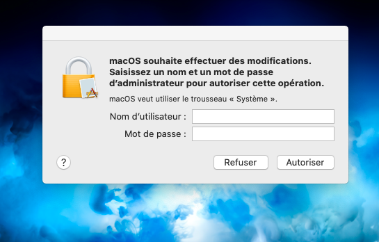 il faut la remplir avec ton nom admin de ton Mac et le MDP de ton compte admin