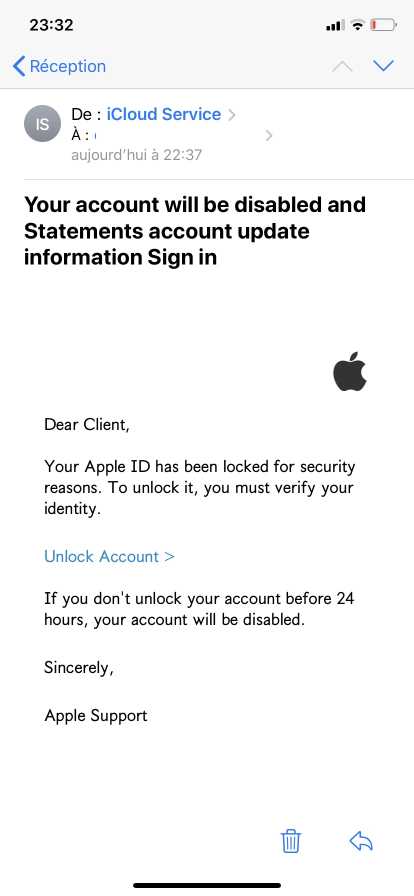 Hello j ai reçu ce mail et je me demande si ce n est pas du fishing!?