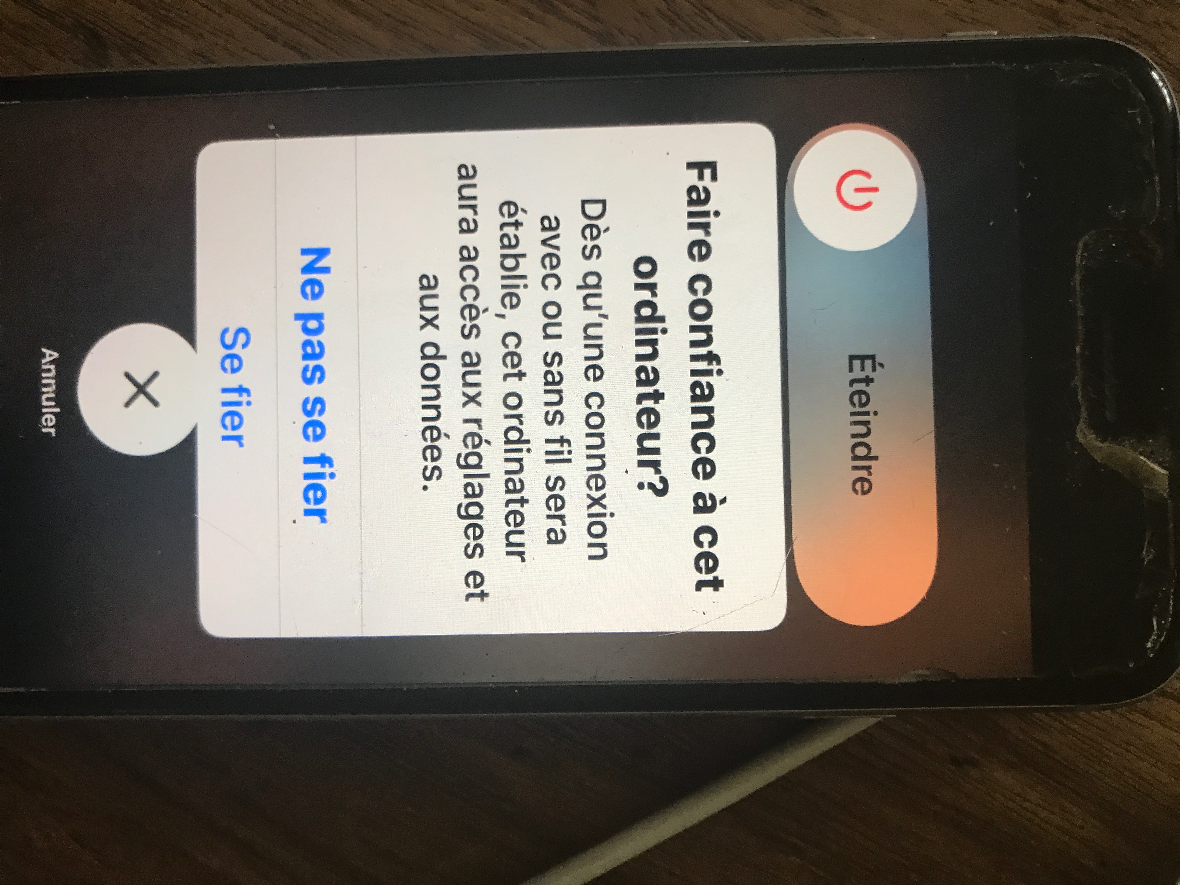 je n’arrive pas à éteindre le cellulaire de mon conjoint. Même en le forçant comme d’habitude. Je ne peux pas glisser le bouton éteindre. Il est jamer
