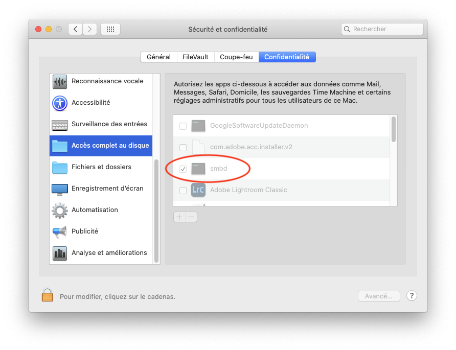 Depuis l’installation de Catalina, quand je me connecte à mon Mac (avec mon identifiant et mon mot de passe) depuis un autre appareil de mon réseau (Mac ou appareil mobile), je n’ai plus accès au contenu des principaux dossiers de base (Documents, Bureau, Téléchargements). Par contre, j’ai accès au contenu des autres dossiers. Les 2 autres Macs du réseau sont sous High Sierra et ne présentent pas ce problème.