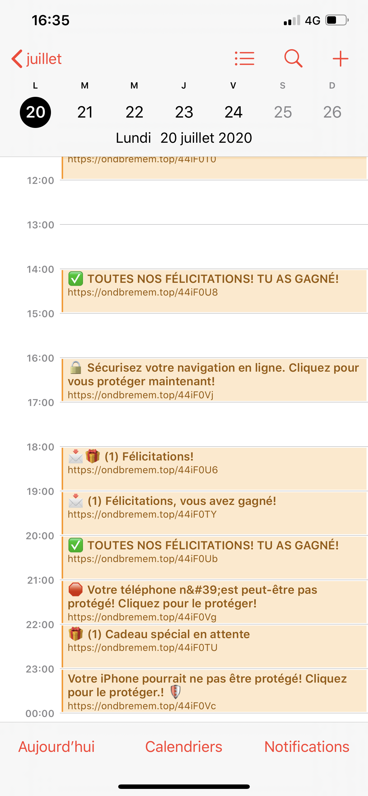 Des spams sont arrivés sur mon calendrier et je n’arrive pas à les supprimer. Même en allant sur iCloud et désactivant le calendrier.