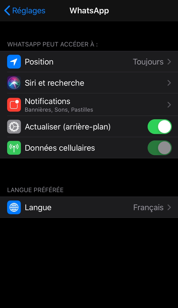 je vais dans réglages mais je ne peux pas régler ce problème comme on me dit