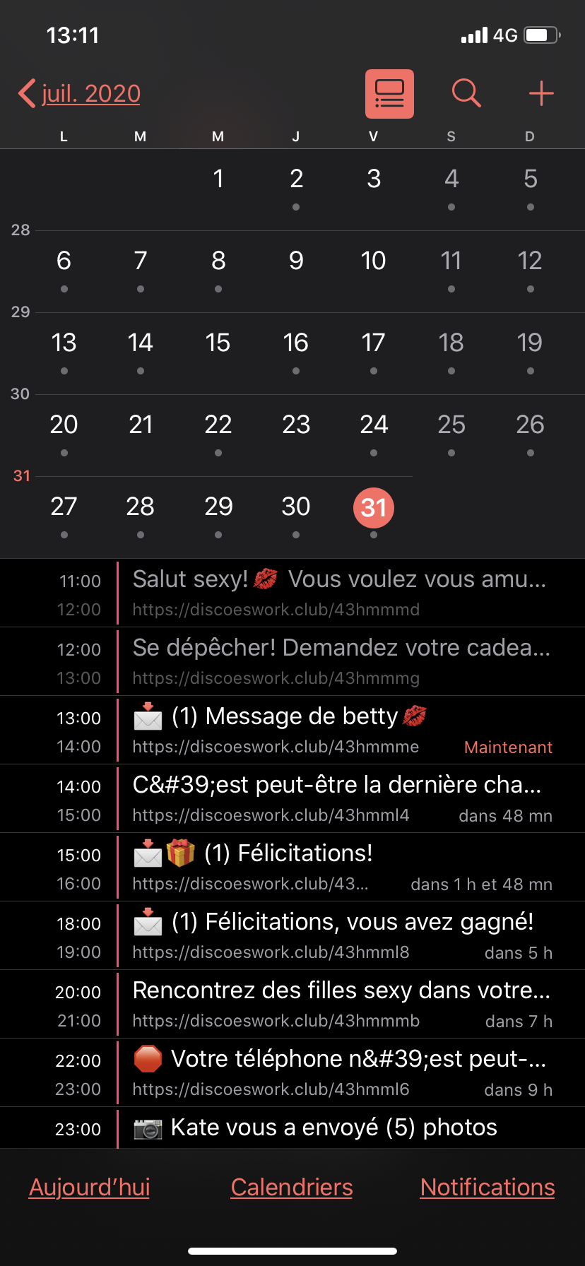 Bonjour j’ai sans faire exprès accepter un abonnement sur un site frauduleux et impossible d’arrêter j’ai tout le teps des notifications de mon calendrier et impossible des les enlevées. Et ça se renouvelle tout les jours.