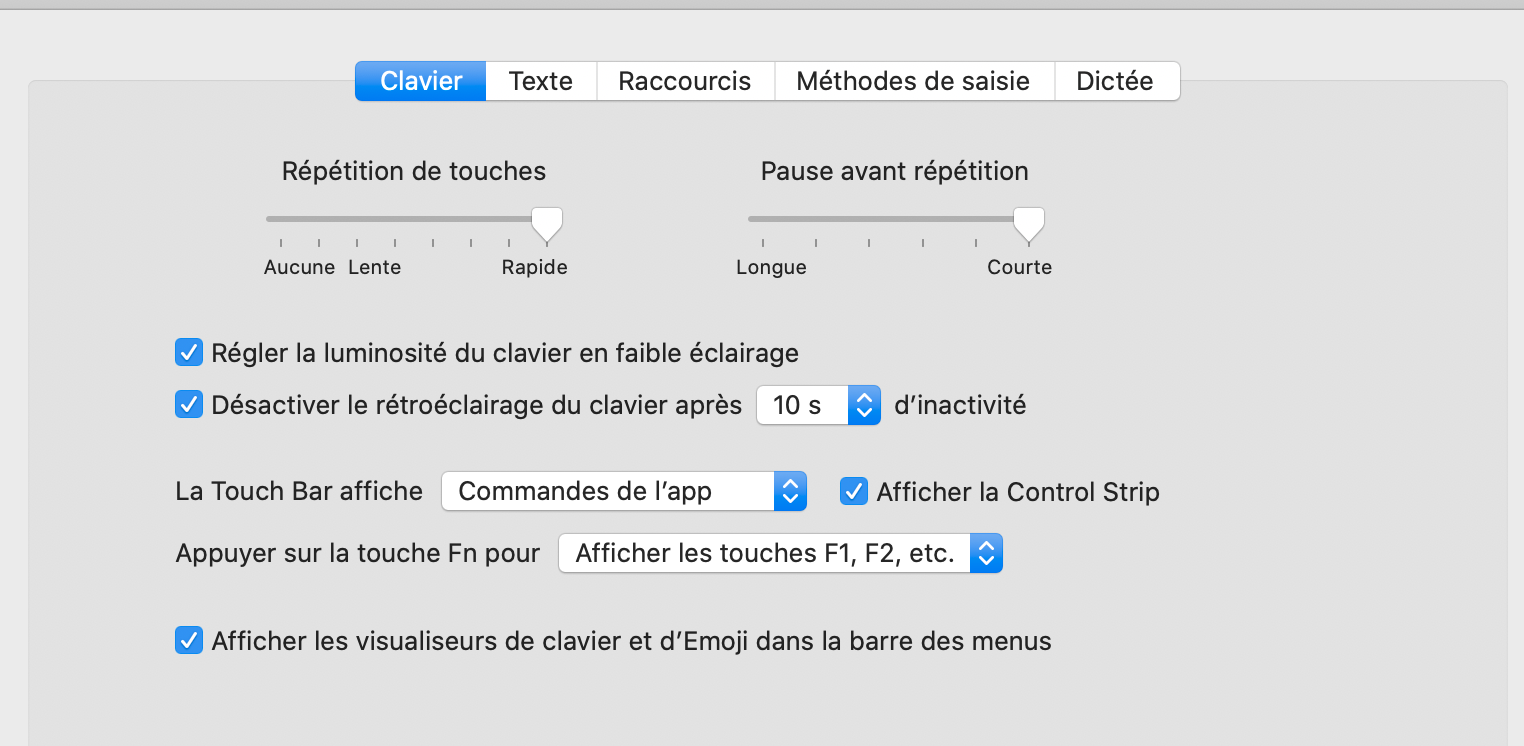 Bonjour, mon clavier ne s'allume pas que ce soit en manuel ou en éclairage faible. Voici le modèle concerné et une copie d'écran des préférences Clavier :