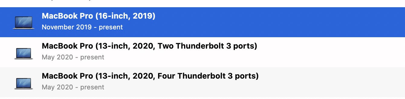 Il y a uniquement les 13 pouces en 2020 qui sont les derniers modèles.