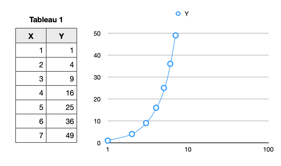J'aimerai faire un graphique (point relié par des lignes) dans numbers avec des échelles différentes :