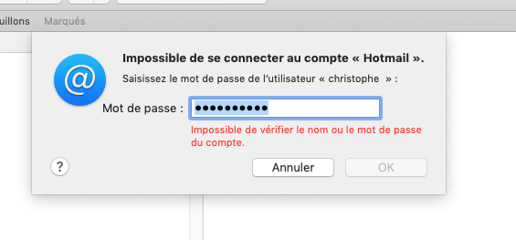 je me trouve dans l incapacité de synchroniser ma boite mail "hotmail " sur Outlook avec mon mac .